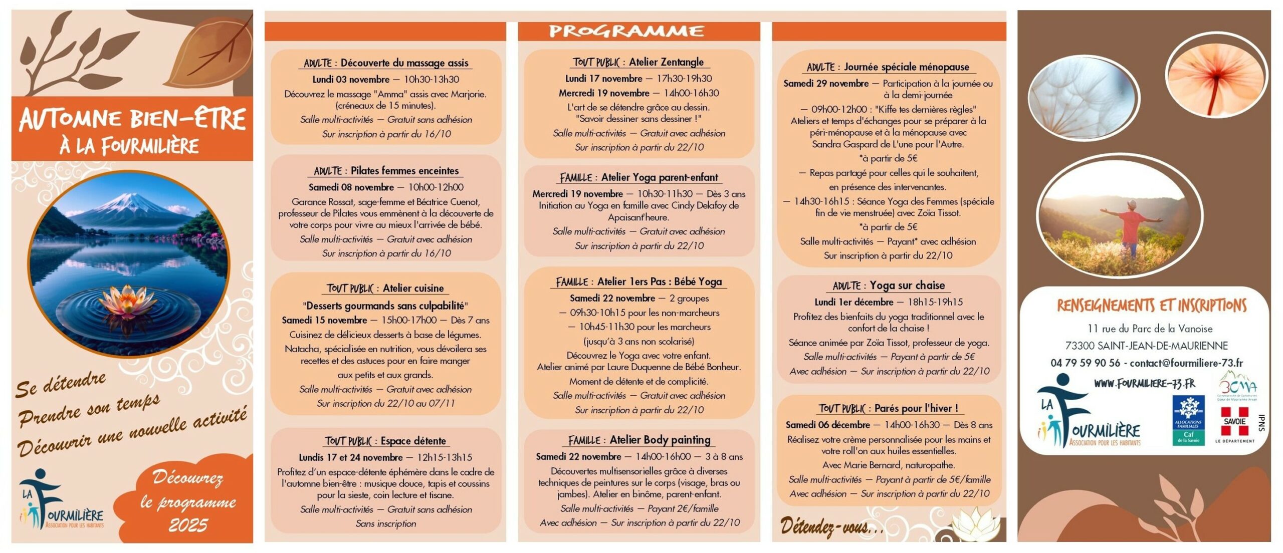 Dans le cadre de « L’automne bien-être », La Fourmilière vous propose des activités dédiées à la détente et à la relaxation.
