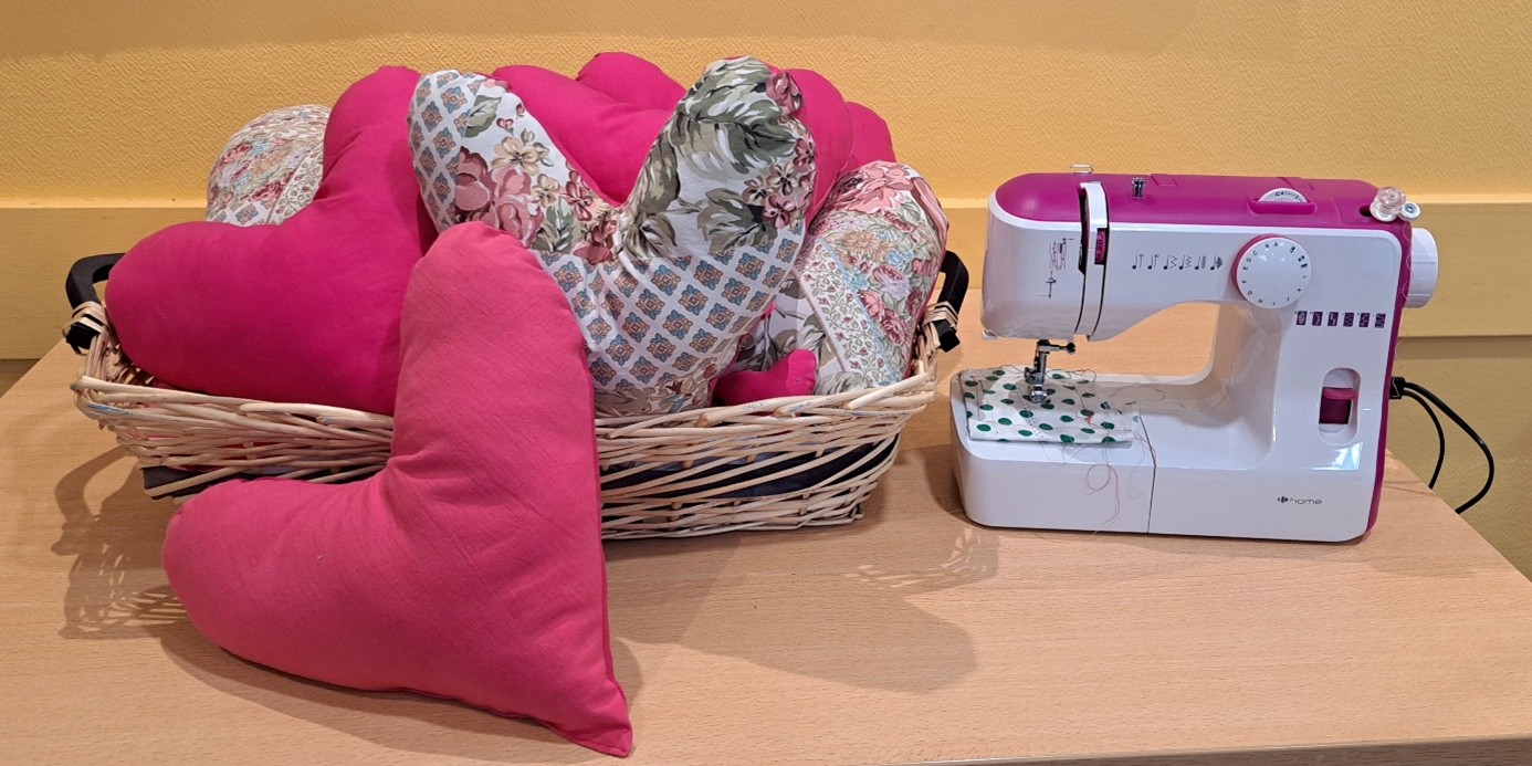 10 « Coussins Cœur » ont été cousus et vont être apportés à l’hôpital de Chambéry pour les femmes qui viennent d’être opérées du cancer du sein.