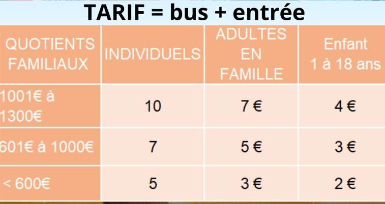 Info tarif ici. Le tarif comprend le bus et l’entrée.