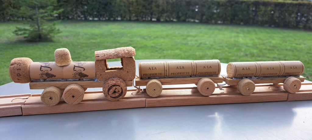 Atelier, avec Gilbert, pour fabriquer un petit train en bouchons de liège.
