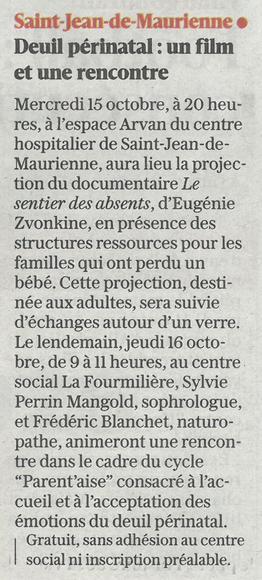 - 08 10 2024 - Parentaise Deuil périnatal - Le Dauphiné Libéré